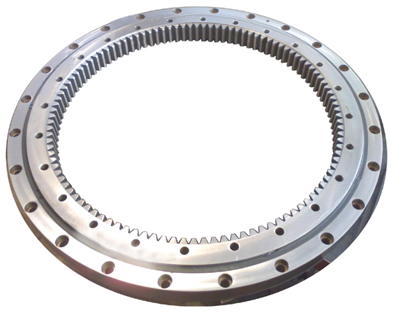 Rotation Mechanism: The excavator’s hydraulic motor drives a pinion gear that meshes with the slewing ring’s gear teeth, enabling rotation.